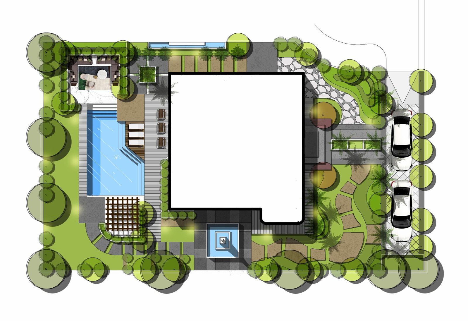 Designing and planning outdoor spaces, gardens, and open areas to harmonize with the architectural character of the project.